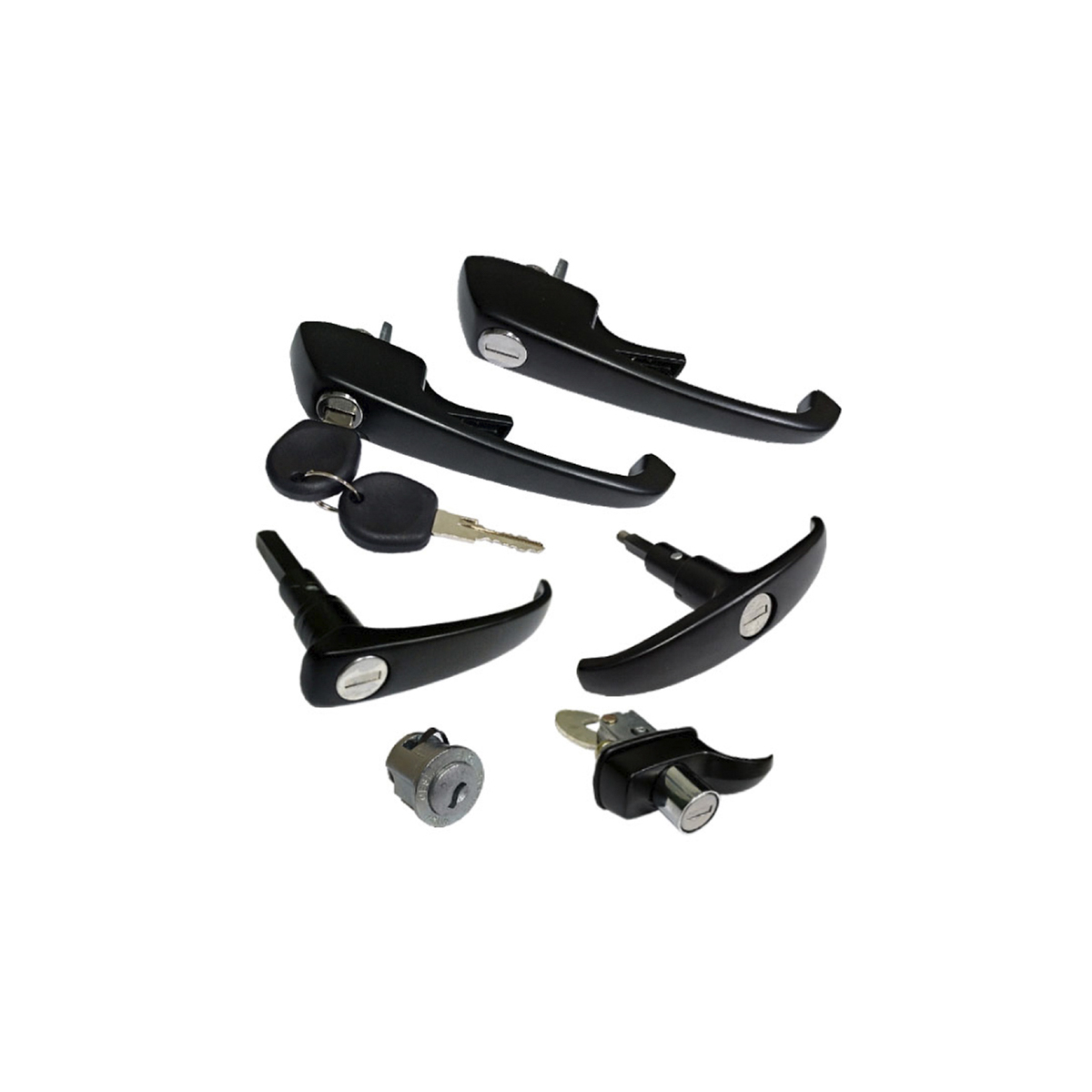 KOMBI 1976 A 1997 PRETA (2 MACANETAS DIANTEIRAS/1 MACANETA CENTRAL/1 MACANETA TAMPA TRASEIRA/2 ROSETAS/1 MACANETA TAMPA MOTOR/1 CILINDRO IGNICAO)